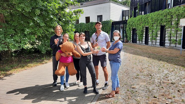 Die Einnahmen der Aktionen dienten zwar der Abschlussfahrt, aber die Schüler/innen möchten sie nicht komplett für sich behalten, sondern spenden einen Teil an die Kinder der Ukraine und einen Teil an das Kinderhospiz Bärenherz - unter dem Motto: „Jedes Kind hat das Recht auf ein schönes Erlebnis!“ Von ihrem fleißig erwirtschafteten Geld geben die Schüler/innen 300 Euro an Bärenherz ab. Für die tolle Summe und das wichtige Zeichen sozialer Verantwortung applaudieren wir und sagen DANKE!