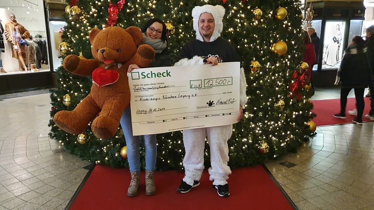 André Karsupke überreichte am 6. Dezember dem Kinderhospiz Bärenherz während des jährlichen Weihnachtsbasars in der Mädler-Passage einen Spendenscheck in der Höhe von unglaublichen 12.500 Euro. Die Summe kam durch das außergewöhnliche und leidenschaftliche Engagement sehr vieler Helfer und Unterstützer zusammen.