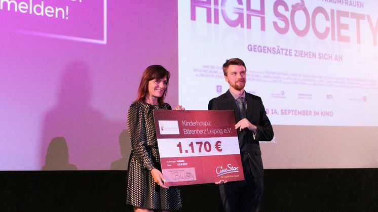 Es war ein schönes Symbol, welches am Mittwochabend im CineStar Leipzig in Form eines Spendenschecks übergeben wurde. 1.170 Euro sammelten Mitarbeiter des Kinos für das Kinderhospiz Bärenherz. Zur CineLadys Spezial wurde der Scheck mit der stolzen Summe an Mona Meister vom Kinderhospiz Bärenherz übergeben.