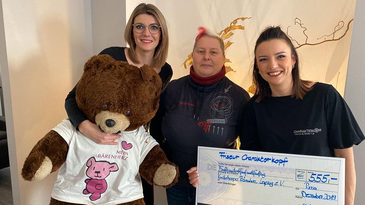 Eine gesonderte Spende in der Höhe von 555 Euro erhielt Bärenherz vom Frieseursalon "Charakterkopf" aus Riesa. Der Betrag kam zusammen, weil "Charakterkopf" 2019 auf Weihnachtsgeschenke für die Kunden verzichtete und statt dessen für einen guten Zweck spendete. Ein bärenherzliches Dankeschön für diese wertvolle Unterstützung.