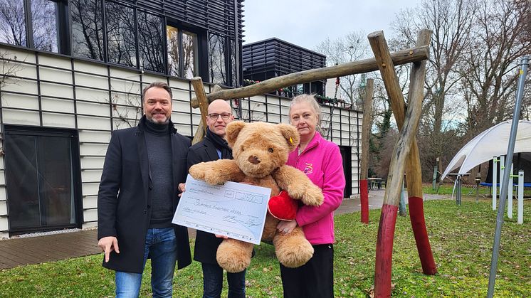 Da es eine Herzenssache war, kamen die Geschäftsführer Holger Hermann und Bastian Vogel persönlich zum Kinderhospiz, um einen Spendenscheck in der Höhe von 2.500 Euro zu übergeben.