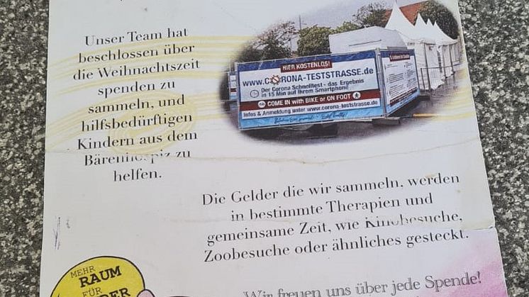 Team des Testzentrums am Wilhelm-Leuschner-Platz Leipzig unterstützt Bärenherz