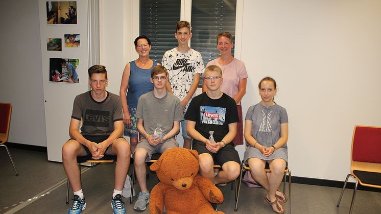 Tim, Robert, Alexander, Johannes und Antonio kamen mit Jutta Fisch und Elke Deckwart zur Spendenübergabe ins Kinderhospiz.