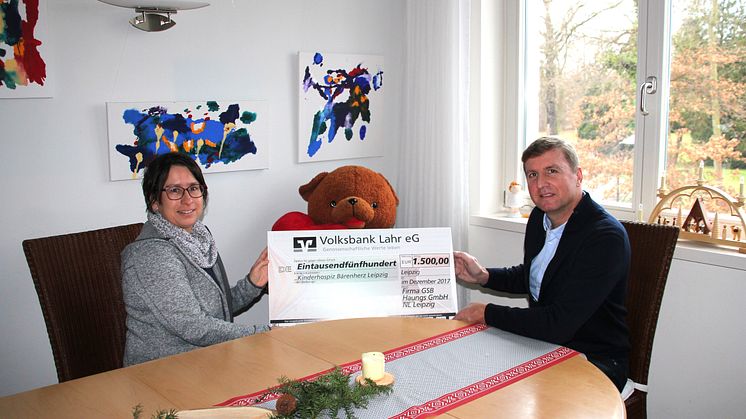 Der Betriebsleiter der GSB Haungs GmbH, Michael Schmelzle, besuchte am 15. Dezember das Kinderhospiz Bärenherz. Dabei hatte er einen Spendenscheck der Niederlassung Leipzig in der Höhe von 1.500 Euro.