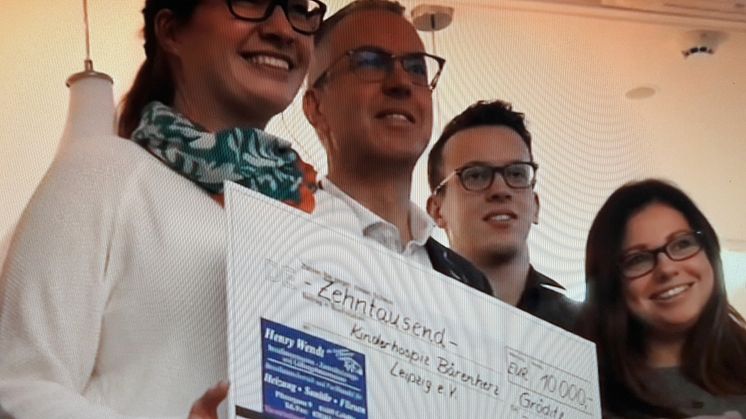 Für Ulrike Herkner, Geschäftsführerin des Fördervereins Kinderhospiz Bärenherz Leipzig e.V., war es in diesem Jahr bereits der zweite Termin bei der Henry Wendt Installationsbetrieb GmbH in Gröditz. Nachdem schon einmal bei der Eröffnung des neuen Firmensitzes gespendet wurde, übergab Henry Wendt jetzt weitere 10.000 Euro an den Verein.