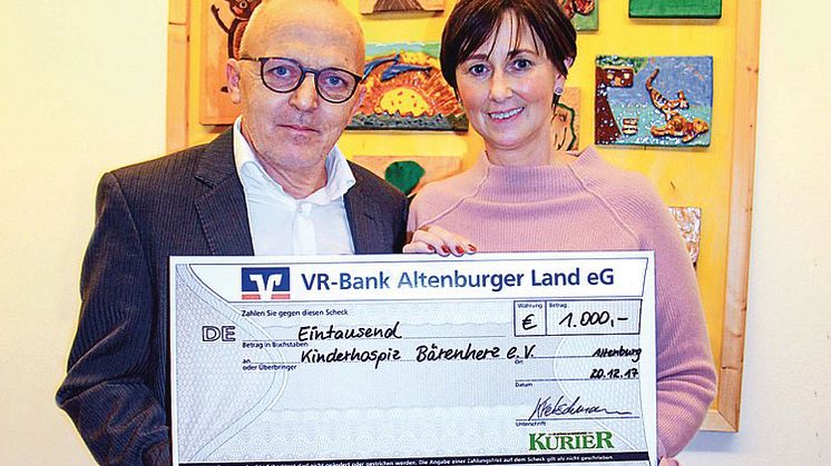 Am 20. Dezember übergab stellvertretend für die Firmenleitung des Kuriers, Andreas Popelka, einen Scheck in der Höhe von 1.000 Euro an Constanze Weiß vom Kinderhospiz.