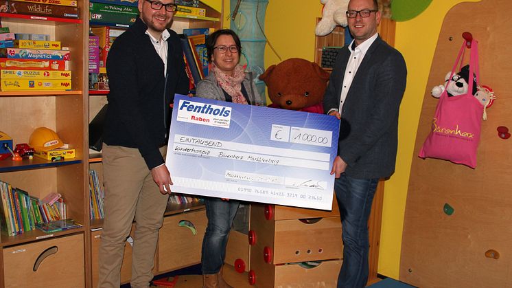 Das Logistikunternehmen Fenthols spendete im Dezember dem Kinderhospiz Bärenherz 1.000 Euro. Die Summe kam durch Spenden der großzügigen Mitarbeiter aus der Niederlassung Leipzig und der Kunden zusammen.