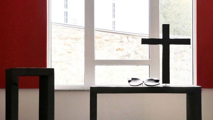 René Theurich gestaltete einen Altar und ein Kreuz aus Holz für das neue Gemeindezentrum der evangelischen Trinitatisgemeinde am See. Gegenüber der Kirchgemeinde äußerte der Künstler, dass er für das Ensemble kein Geld möchte, stattdessen soll das Kinderhospiz Bärenherz mit einer Spende bedacht werden.