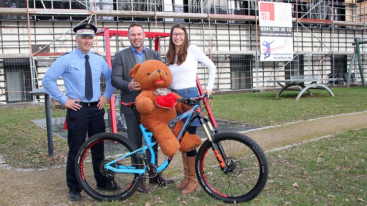 ​Es war eine recht ungewöhnliche Spendengeschichte über Diebstahl und Betrug, die das Bärenherzteam zu hören bekam, als gestern Christian Schwarzlaff, Polizeioberkommissar Alexander Bertram und Polizeihauptmeisterin Katrin Kropf ins Kinderhospiz Bärenherz kamen, um ein Fahrrad im Wert von 3.500 Euro zu übergeben.