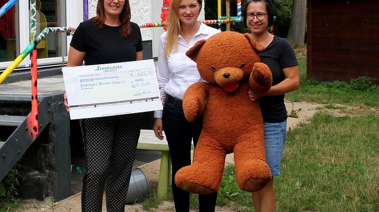 ​Schon zum 4. Mal erhält das Kinderhospiz Bärenherz eine Spende von der Schnellecke Sachsen GmbH. Die Belegschaft von Schnellecke Logistics bewies Kampfgeist und Ausdauer beim Leipziger Firmenlauf. Das Startgeld von 25 LäuferInnen ging an Bärenherz. Einen Spendescheck in der Höhe von 625 Euro übergaben am 30. Juli Annika Gorny und Julia Britzke im Kinderhospiz.