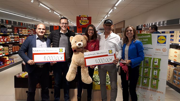 Für die gute Sache mimt Axel Schulz den Kassierer bei der Wiedereröffnung des Lidl-Marktes in der Stuttgarter Allee. Lidl belohnt seinen Einsatz mit einer Spende in Höhe von 2.000 Euro an das Kinderhospiz Bärenherz.