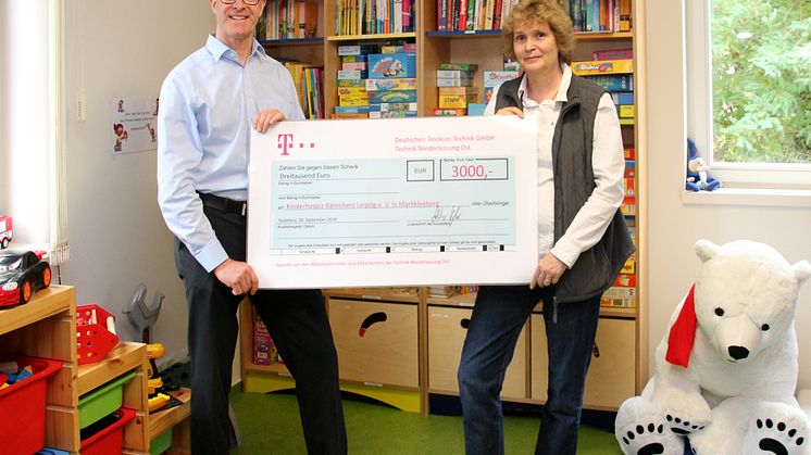 Bereits zum 4. Mal haben die Mitarbeiter*innen der Deutschen Telekom/Niederlassung Ost für Bärenherz gespendet. Und so kommen nach 2010, 2012 und 2015 diesmal 3.000 Euro dem Kinderhospiz zu Gute.