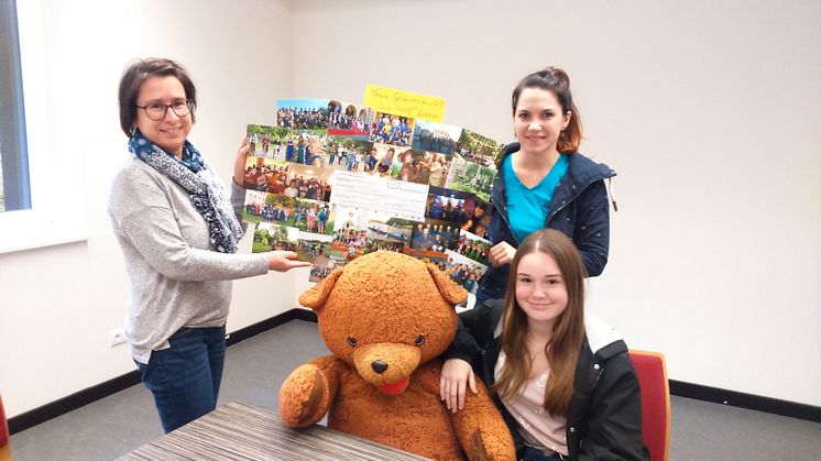 Die Abschlussklasse der Freien Gesamtschule "Gustav Adolf" in Lützen hatte Geld gesammelt, um eine Schulabschlussparty zu feiern. Es blieb am Ende Geld übrig, das die jungen Absolventen an Bärenherz spendeten. Sage und schreibe 1.160 Euro durfte Saskia Mede im Namen der Klasse gemeinsam mit Lehrerin Janine Einecke an Kerstin Stadler vom Förderverein übergeben.