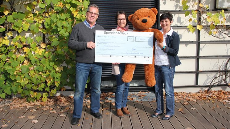 Ihren Tag der offenen Tür nutze die NORAND Schlauchlining GmbH, um eine kleine Feier zu organisieren und Gäste dazu einzuladen. Anlass war auch der Geburtstag des Geschäftsführers Andreas Herrmann, der darum bat, dass seine Gratulanten auf Blumen und Geschenke verzichten, aber gern eine Spende an das Kinderhospiz Bärenherz tätigen. 4.600 Euro sind durch diesen netten Aufruf zusammen gekommen.