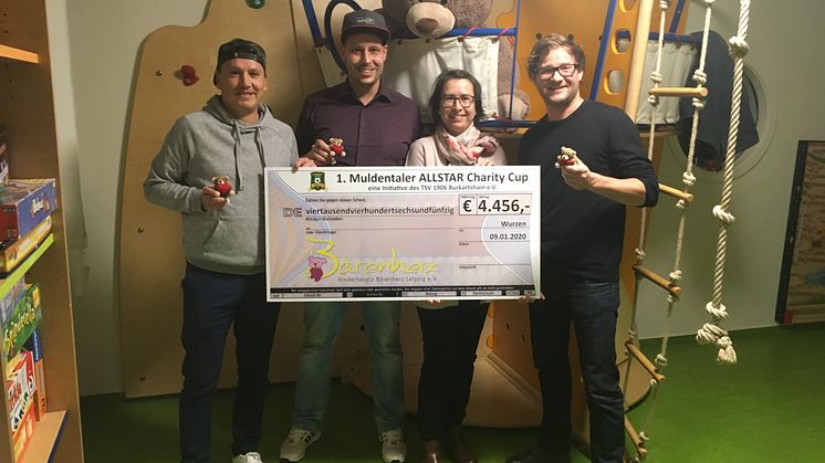 Am 28. Dezember fand der 1. Muldentaler ALLSTAR Charity Cup im Herrenbereich statt. Die Veranstaltung war außerordentlich erfolgreich. Aus diesem Grund konnten am 9. Januar Lars Metzner, Tobias Keil und Dirk Ries auch einen großen Spendenscheck in der Höhe von 4.456 Euro im Kinderhospiz Bärenherz Leipzig hinterlassen.