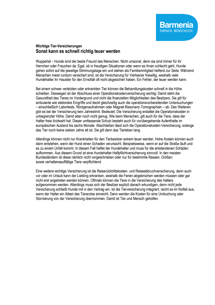 Während Menschen meist rundum versichert sind, ist die Versicherung für Vierbeiner freiwillig, weshalb viele Hundehalter ihr Haustier für den Ernstfall oft nicht abgesichert haben. Ein Fehler, der teuer werden kann.