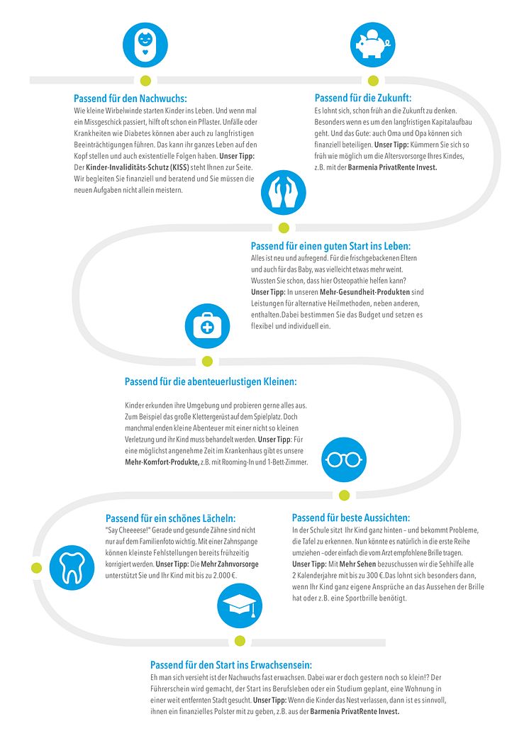 Das Mehr für die Familie: Die Barmenia bietet jetzt mit dem Passend-für-Kinder-Schutz ein neues Produktkonzept für die Bedürfnisse von Familien an. Ob Krankheit, Invalidität, Unfall oder finanzielle Vorsorge – in einer Komplettlösung mit nur einem Gesundheitsfragenkatalog können Eltern ihr Kind unkompliziert, umfassend und individuell absichern.