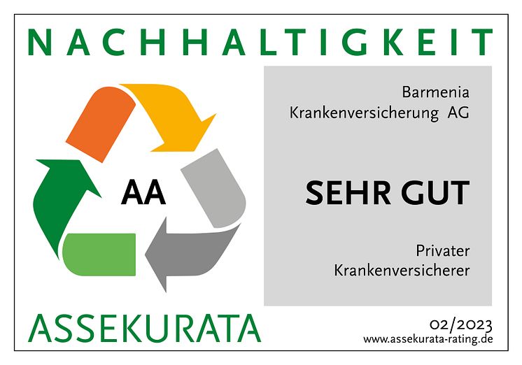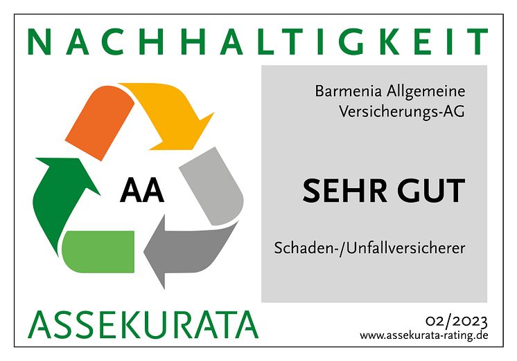 • "Sehr gut" für die Barmenia Lebensversicherung a. G. im Nachhaltigkeitsrating.