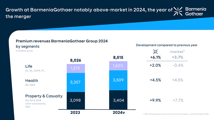 Growth at BarmeniaGothaer notably above-market in 2024, the year of the merger