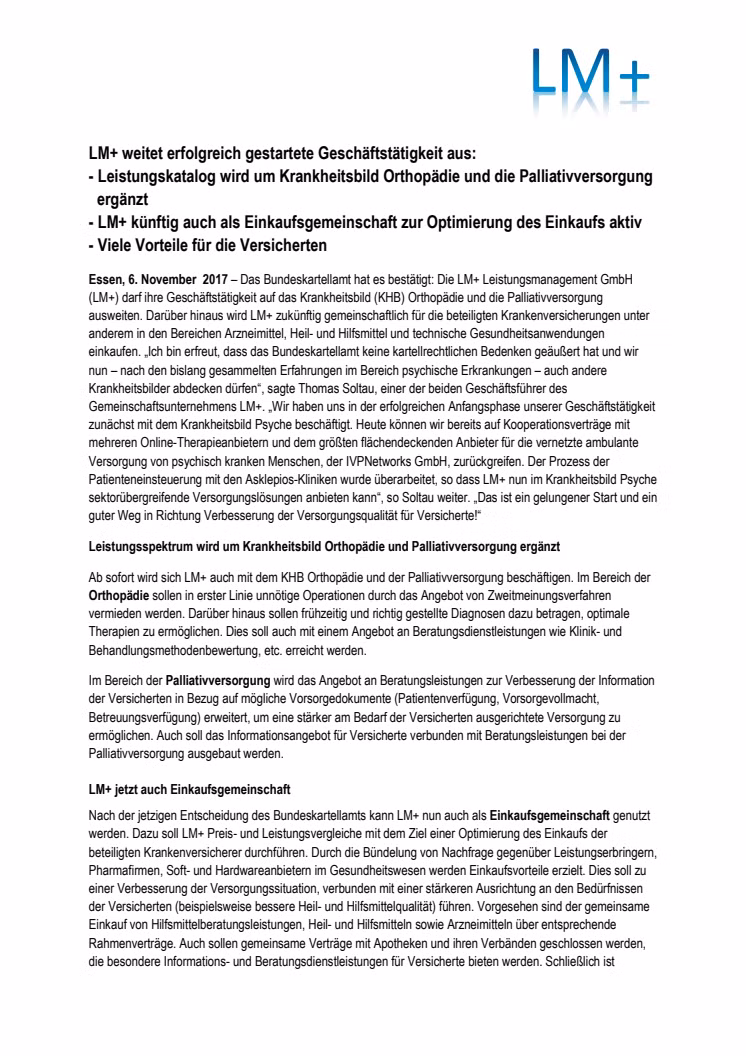 • LM+ weitet erfolgreich gestartete Geschäftstätigkeit aus