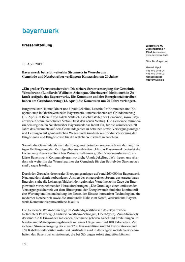Bayernwerk betreibt weiterhin Stromnetz in Wessobrunn