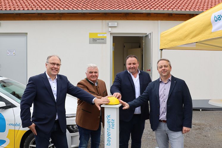 Nahmen gemeinsam die Schaltstation in Niederwinkling offiziell in Betrieb (v.l.n.r.): Thomas Kotarski, Leiter Betrieb Umspannwerke & Schaltstationen Bayernwerk Netz GmbH, Niederwinklings 1. Bürgermeister Ludwig Waas, Mariaposchings 1. Bürgermeister Martin Englmeier und Jürgen Heininger, Leiter des Bayernwerk-Kundencenters in Vilshofen.