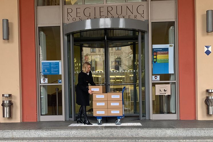 Maria Wolf, Landschaftsarchitektin, gibt im Auftrag der Bayernwerk Netz GmbH am Dienstag, 4. November, die Planfeststellungsunterlagen für die Ertüchtigung der J91 bei der Regierung von Oberbayern in München ab. Die Hochspannungsleitung soll zukunftssicher gemacht werden.