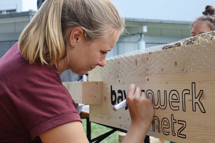 Arten- und Umweltschutz beginnt im Kleinen und deswegen summt und brummt es in Zukunft noch mehr in den Bayernwerk-Umspannwerken. Bei einem gemeinsamen Aktionstag am Dienstag, 27. Juli, im Schulungszentrum in Schwandorf haben Nachwuchs- und Führungskräfte aus dem gesamten Netzgebiet als Beitrag zum Erhalt einheimischer Tier- und Pflanzenarten mehrere Bienenhotels und Nisthilfen gebaut.