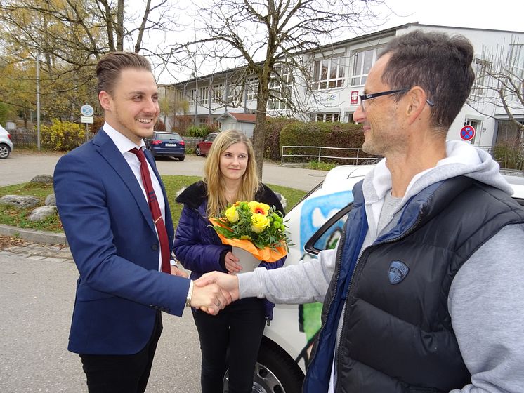 Der Bayernwerk-Ausbildungsleiter in Oberbayern, Tobias Marschner (links), überreichte die Spende an Caritas-Verwaltungsleiter Hannes Klapos.