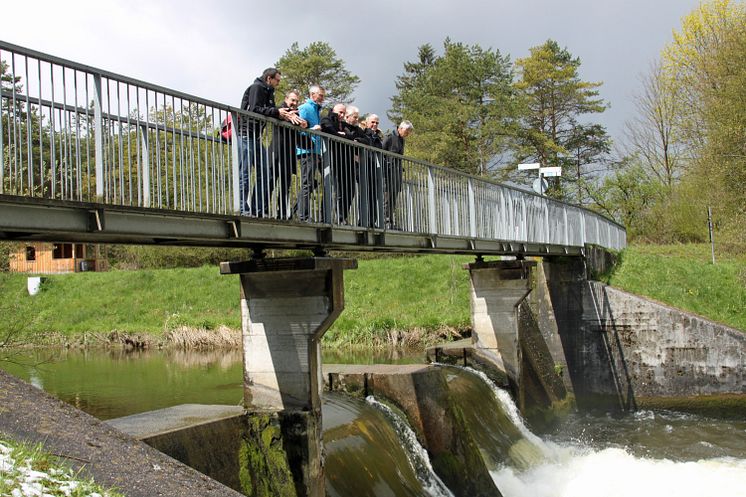 Bayernwerk Natur, Stadtwerke Bad Tölz, Energiewende Oberland und kommunale Vertreter informierten vor Ort über die Pläne zum Neubau des Wasserkraftwerks Farchet am Isar-Loisach-Kanal in Wolfratshausen.