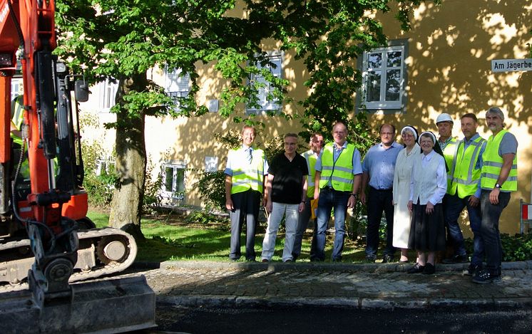 v.l.: Johann Seebauer (Bayernwerk), Bürgermeister Franz Reichold, Michael Smolik (Omexom Frankenluk), Peter Ketterl (Bayernwerk), der kaufmännische Leiter Ludwig Spagl sowie die Schwestern vom Kloster Strahlfeld Sr. Geraldine und Priorin Sr. Anette, Gerhard Dürr und Roland Bottke (beide Omexom Frankenluk), Martin Gierl (Bayernwerk).
