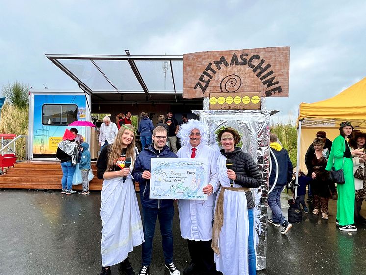 Wette mehr als gewonnen: TVO-Moderatorin Klaudia Ruminska, Marcel Boiger, Kommunalmanager der Bayernwerk Netz GmbH, Bürgermeister Thomas Löffler, Dorfhelden-Moderatorin Dany Füg.