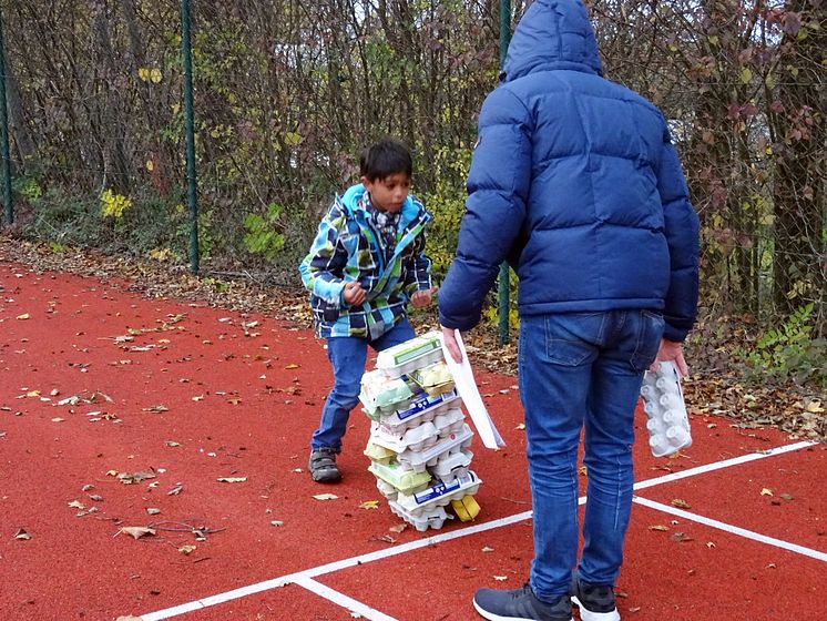 Eine Disziplin der Miniolympiade, die sich die Bayernwerk-Azubis ausgedacht haben, bestand darin, Eierkartons unter Zeitdruck möglichst hoch zu stapeln.