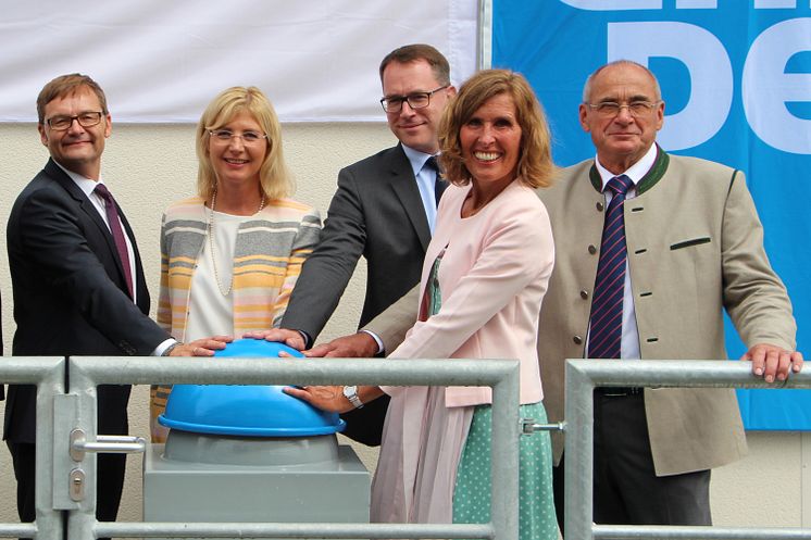 Im Rahmen einer kleinen Zeremonie mit Gästen aus der Politik, von Behörden, beteiligten Firmen und Medien wurde das Wasserkraftwerk Baierbrunn am Mittwoch, 12. Juli, von Staatsministerin Ulrike Scharf ihrer Bestimmung übergeben. Auf dem Bild (v.l.n.r.): Bayernwerk-Vorstandsvorsitzender Reimund Gotzel, Umweltministerin Ursula Scharf, Dr. Klaus Engels, Direktor Wasserkraft Deutschland der Uniper-Kraftwerke, Bürgermeisterin Barbara Angermaier und Franz Geiger, Präsident Fischereiverband Oberbayern.