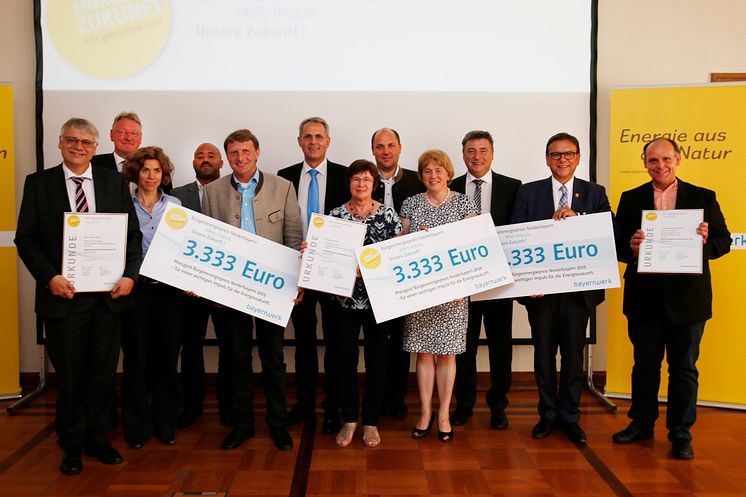 Foto: Die Gewinner des Bürgerenergiepreises Niederbayern 2015.