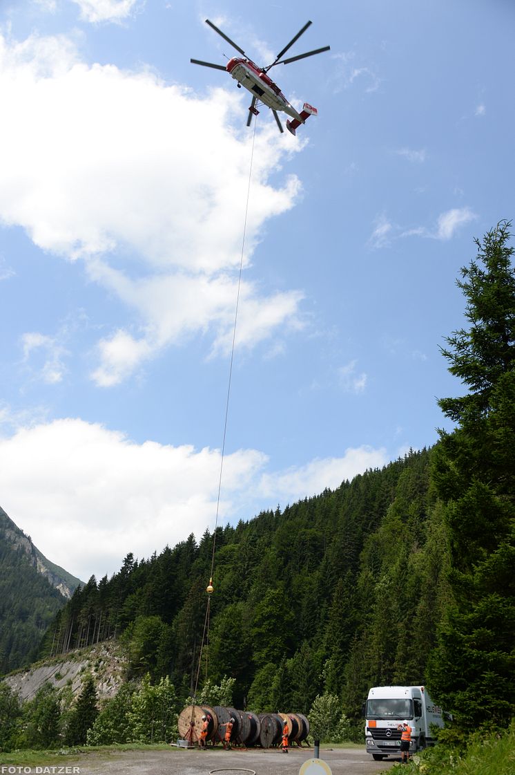 Foto: In Summe sieben Kabeltrommeln transportierte der Transporthubschrauber zur Taubensteiner Bergstation