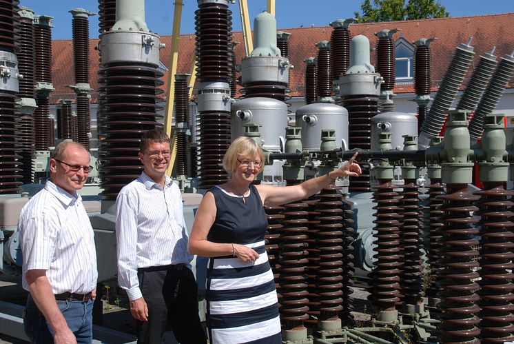 Foto: vl. Albert Breitsameter, Netzbauleiter am Netzcenter Pfaffenhofen, Stefan Theiner, verantwortlich für die oberbayerischen Netzdienste und Ursula Jekelius, Regionalleiterin für Oberbayern.