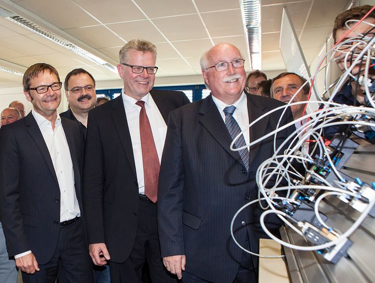 v.r.n.l.: Regierungspräsident Wilhelm Wenning, Bürgermeister Thomas Ebersberger und Bayernwerk-Vorstandsvorsitzender Reimund Gotzel.