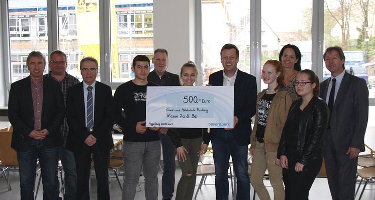 Große Freude über den Scheck des Bayernwerks als Anerkennung für ihre Idee.