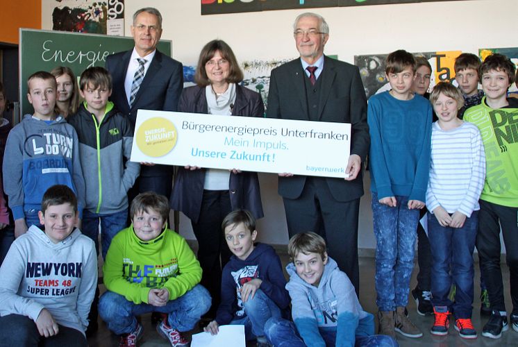 Im Kreise der Schülerinnen und Schüler der Schlossberg Grund- und Mittelschule Nüdlingen, einem der Vorjahressieger, startete der diesjährige Bürgerenergiepreis Unterfranken.