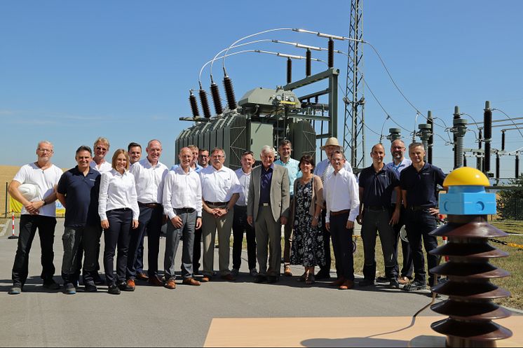 Nach dreijähriger Bauzeit ist das neue Umspannwerk Gebelkofen offiziell in Betrieb genommen worden. Zwölf Millionen Euro hat die Bayernwerk Netz GmbH (Bayernwerk) in die Hand genommen, um das Stromnetz des Land-kreises Regensburg rund um Gebelkofen grundlegend zu erneuern. Technik-Vorstand Dr. Egon Westphal (8.v.l.) mit kommunalen Vertretern, Gästen und Bayernwerk-Mitarbeitern.