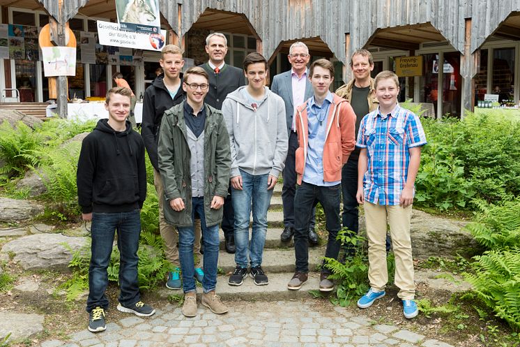 Gemeinsam mit Christoph Henzel , Leiter des Geschäftsbereichs Kommunalmanagement der Bayernwerk AG (hinten links) , Ralph Thoms, NaturVision Festivalleiter (Mitte)