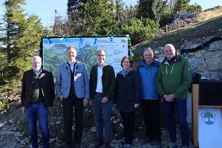 v.l.n.r.: Michael Andrelang (2. Bürgermeister), Simon Frank (1. Bürgermeister von Aschau), Bayernwerk Netz Geschäftsführer Dr. Joachim Kabs, Pfarrerin Betina Heckner, Pfarrer Paul Jansen, Anton Schmuck (Geschäftsführer Dippold&Gerold)