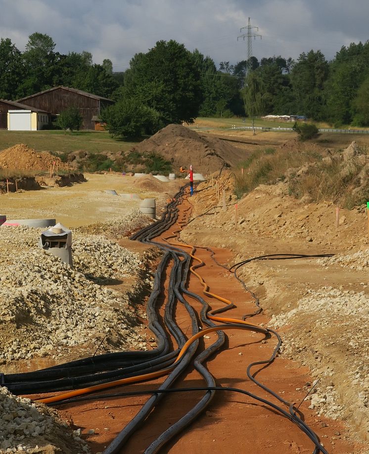 Parallel zu den Verkabelungsmaßnahmen läuft die Erschließung des Gewerbegebiets Weiherwiesen II.