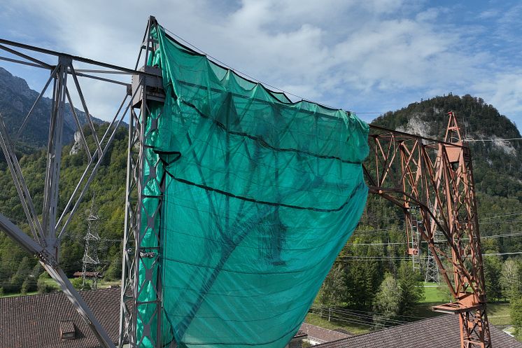 Die Bayernwerk Netz GmbH gibt dem Portal im Umspannwerk am Walchenseekraftwerk in Kochel am See einen frischen Anstrich. Spezialisten versehen die denkmalgeschützte Konstruktion mit spezieller Korrosionsschutzfarbe.