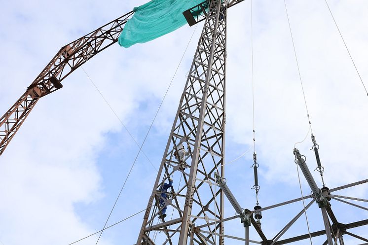 Die Bayernwerk Netz GmbH gibt dem Portal im Umspannwerk am Walchenseekraftwerk in Kochel am See einen frischen Anstrich. Spezialisten klettern rund 44 Meter in Höhe und versehen die denkmalgeschützte Konstruktion mit spezieller Korrosionsschutzfarbe.