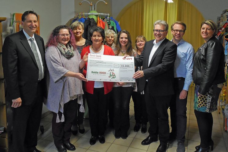 Einen Scheck über 15.000 Euro überreichte Bayernwerk-Gesamtbetriebsratsvorsitzender Albert Zettl (3. v. r.) an Robin-Hood-Vorsitzende Claudia Heitzer (2. v. l.).