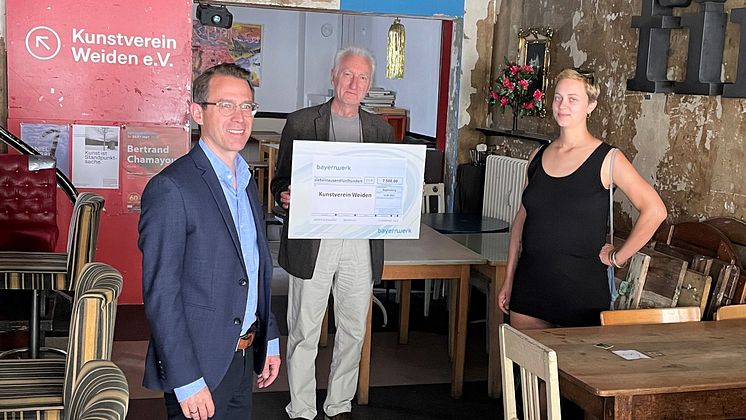 von links nach rechts: Dr. André Zorger (Bayernwerk), Wolfgang Herzer und Carolin Schiml (beide Kunstverein Weiden).