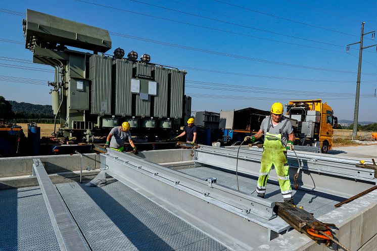 Südwestlich von Unterhaid im Landkreis Bamberg baut das Bayernwerk ein neues Umspannwerk. Mit dem rund 40 Tonnen schweren Netztransformator wurde das Herzstück der neuen Anlage geliefert .