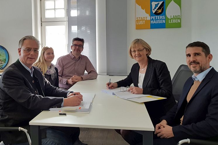 Die sichere Stromversorgung der Gemeinde Petershausen im oberbayerischen Landkreis Dachau ist auch in Zukunft Aufgabe des Bayernwerks. v.l.: Bürgermeister Marcel Fath, Klimaschutzbeauftragte Susanne Salvamoser, Geschäftsleiter